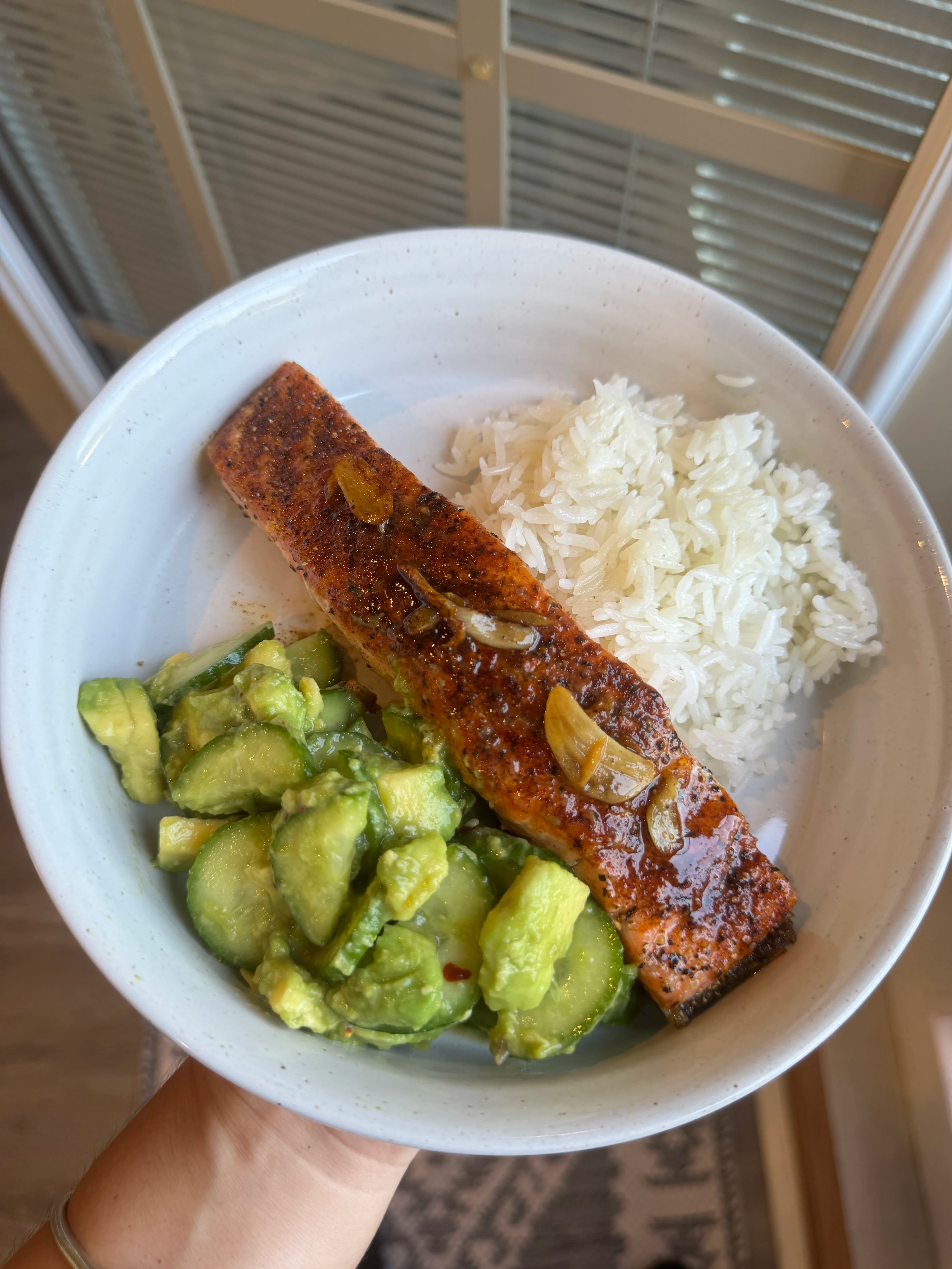 Seared Salmon With a Side of Avocado/Cucumber Salad